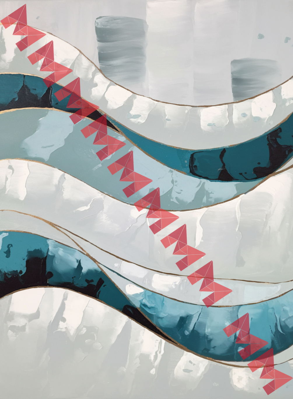 Elevate your space with this elegant abstract wave design in calming teal and white hues, perfect for a modern and sophisticated decor.